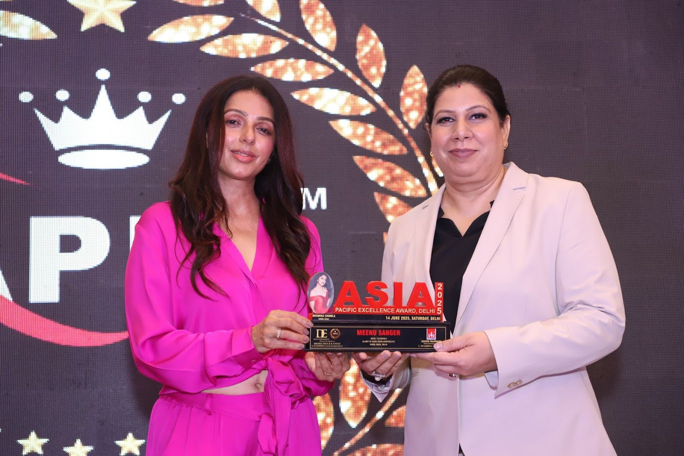Organized by Brand Empower , the prestigious Asia Excellence Awards 2025 recognized excellence across Hospitality, Innovation, and Leadership. Held in Delhi on June 14, 2025 the event honored top achievers from across Asia—where Meenu Sanger proudly received the Best Hospitality Award for her outstanding work at Citi Continental Hotel , Karol Bagh. The award was presented by renowned Bollywood actress Ms. Bhumika Chawla
